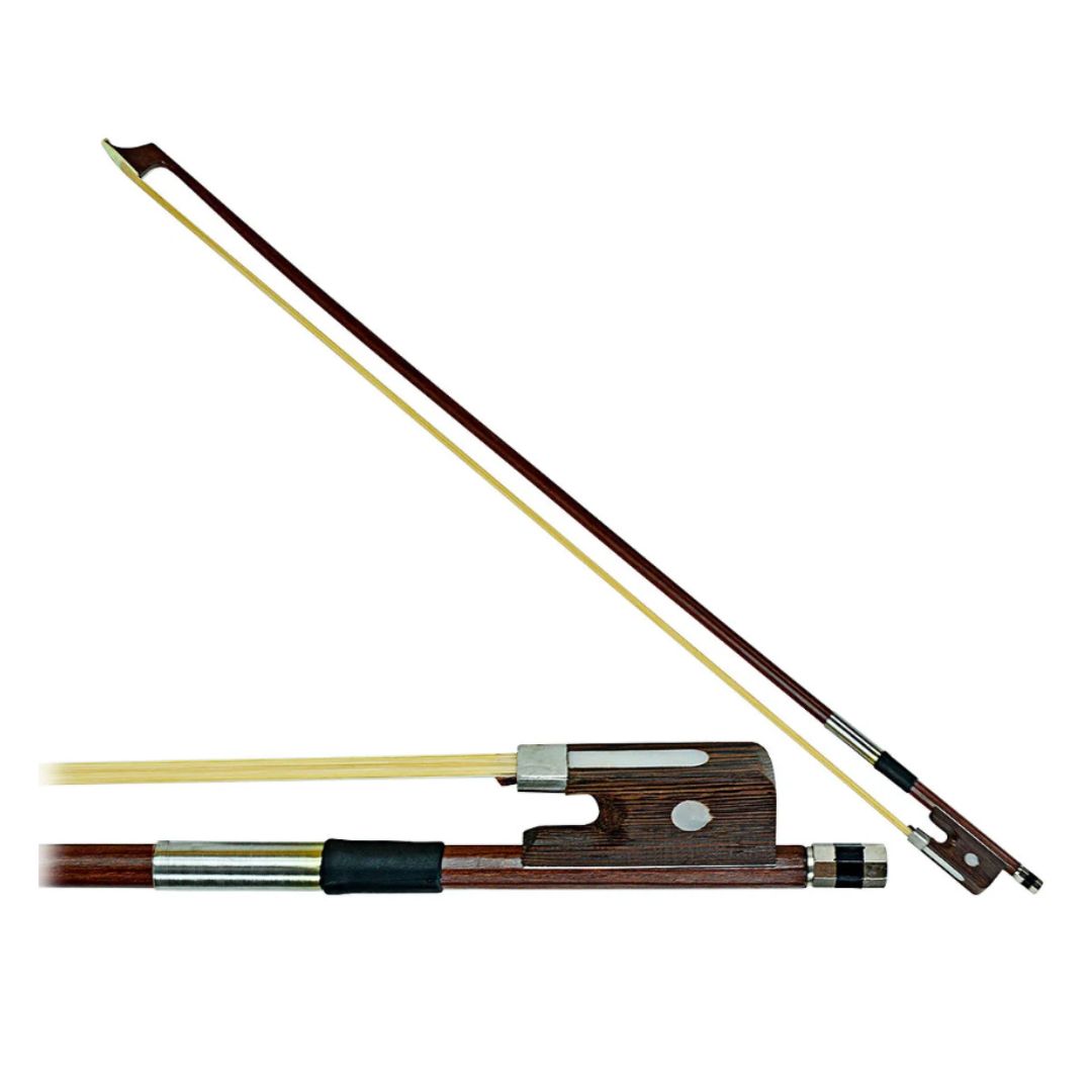Arco com acabamento em verniz sintético, possui o corpo formato redondo (Tradicional), com talão em madeira ébano com detalhe em olho paris, madrepérola incrustada na madeira e crina animal.